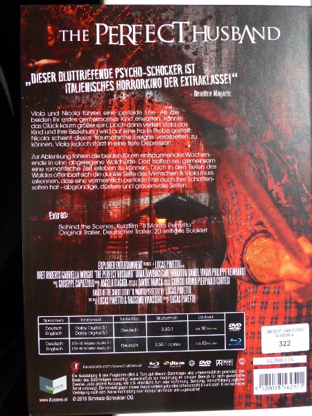 Extras: | Disc 1 (BD-25) + Behind the Scenes (25:54 Min.) (Ton: it.; kein UT) + Kurzfilm "Il Marito Perfetto" (38:28 Min.) (37:07 Min. o.A.) (Ton: it.; UT: dt.) + Original Trailer (02:09 Min.) (eng.) + Deutscher Trailer (02:12 Min.) Disc 2 (DVD-8,5) + Behind the Scenes (25:53 Min.) (Ton: it.; kein UT) + Kurzfilm "Il Marito Perfetto" (38:27 Min.) (37:30 Min. o.A.) (Ton: it.; UT: dt.) + Original Trailer (02:03 Min.) (eng.) + Deutscher Trailer (02:06 Min.) |