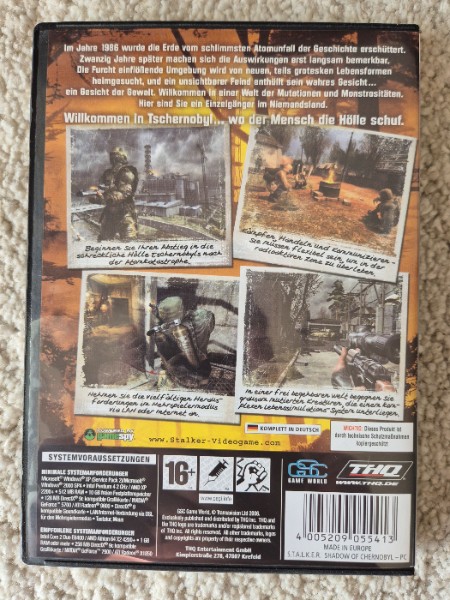 Dieses PC-Spiel, entwickelt von GSC Game World und veröffentlicht von THQ, bringt Spieler mitten in die postapokalyptische Umgebung von Tschernobyl, wo das echte Desaster einer Katastrophe eine bizarre und gefährliche Zone geschaffen hat. Die Spieler übernehmen die Rolle eines Stalkers, eines Glücksjägers, der in die kontaminierte Zone eindringt, um Artefakte und Informationen zu bergen.