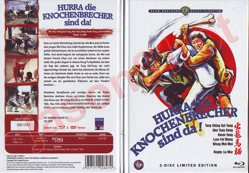 Für alle Fans des klassischen Kung-Fu Kinos bietet diese 2-Disc Limited Edition von "Hurra, die Knochenbrecher sind da!" ein echtes Sammlerstück. Diese exklusive Auflage ist auf lediglich 333 Stück limitiert, wovon dies die Nummer 252 ist, eine Rarität für jeden Liebhaber.