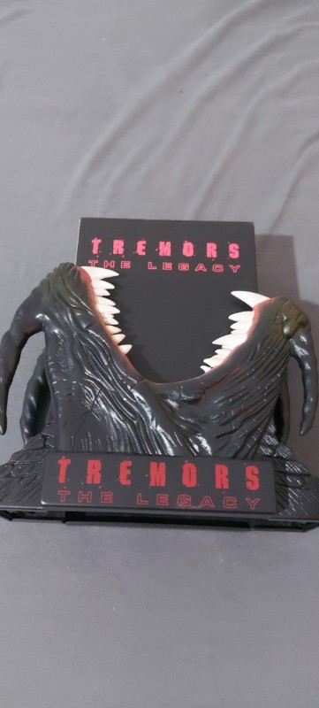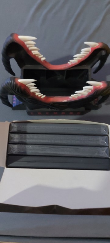 Die Box selbst ist ein echter Blickfang: Sie zeigt das Modell eines bedrohlichen Graboids, das Kultmonster der Serie, mit gruselig aufgerissenen Maul und spitzen Zähnen. Diese Figur fügt jeder Sammlung einen exquisiten und eindrucksvollen Touch hinzu. Das kräftige, dunkle Design der Box, unterbrochen von der kräftigen roten Schrift des "Tremors" Logos, macht sie auch optisch zu einem Highlight.