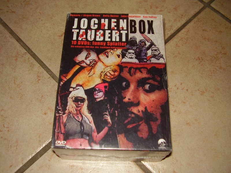 Die Box besteht aus einer sorgfältig ausgewählten Zusammenstellung von Werken, die von Jochen Taubert, einem bekannten Namen in der Szene der Trash- und Splatterfilme, inszeniert wurden. Bekannt für seine unkonventionelle Filmkunst und den kreativen Umgang mit schockierenden Motiven, garantiert Taubert Unterhaltung, die oft am Rande des Vorstellbaren wandelt.