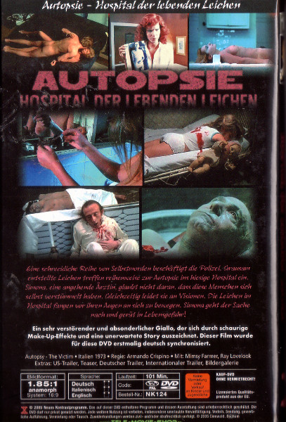 Tauchen Sie ein in ein Meisterwerk des Schockierens und der Spannung mit der DVD-Veröffentlichung von "Autopsie - Hospital der lebenden Leichen", einem herausragenden Stück der Italo-Giallo-Horror-Serie. Diese deutsche Erstveröffentlichung ist die 23. Ausgabe der berühmten "X-Rated Italo-Giallo-Serie", die dafür bekannt ist, die dunkelsten und packendsten Geschichten aus Italien auf die Bildschirme zu bringen.