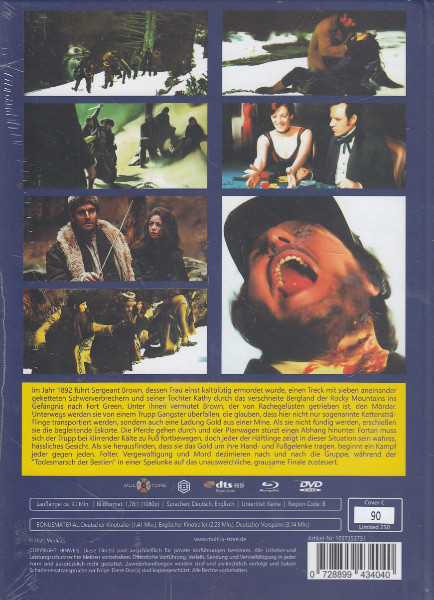 Erleben Sie mit dem Mediabook Cover B von "Todesmarsch der Bestien" eine einzigartige Sammleredition, die sowohl für Filmkenner als auch für Liebhaber seltener Filmstücke ein absolutes Muss ist. Diese limitierte Edition beinhaltet die Blu-ray des Films und zeichnet sich durch ein exklusives Cover-Design aus, das nur in begrenzter Stückzahl verfügbar ist. Das Mediabook enthält neben dem Film auch spannende Bonusmaterialien, die tiefe Einblicke in die Produktion und die Hintergründe des Filmes gewähren. Dank der FSK 18-Freigabe erleben Sie den Film ungekürzt und in voller Intensität.