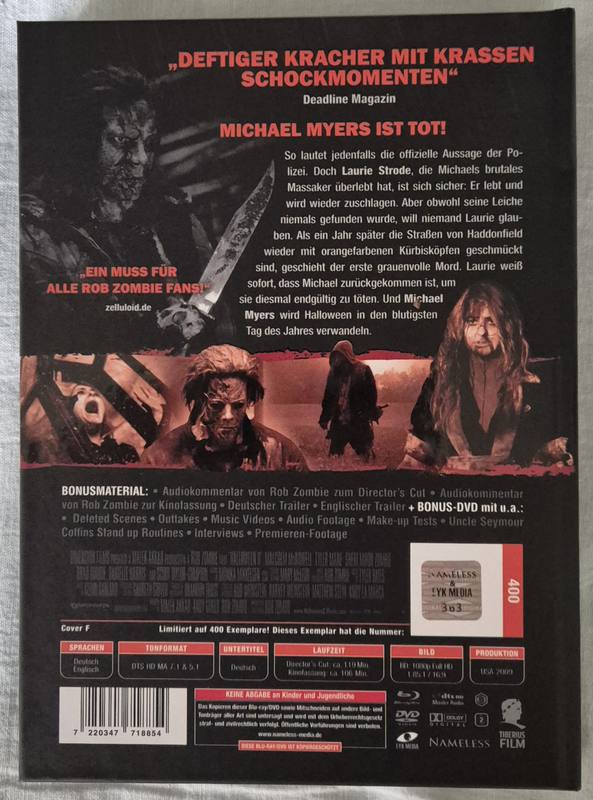 Tauchen Sie ein in die düstere Welt von "Halloween 2" mit diesem exklusiven Nameless Mediabook. Die limitierte Edition (Nummer 363 bis 400) bietet nicht nur den spannungsgeladenen Horrorfilm in exzellenter Blu-ray-Qualität, sondern auch ein einmaliges Sammlerstück für echte Fans des Genres. Dieses Mediabook umfasst besondere Features, die jeden Horror-Liebhaber begeistern werden. Mit seinem atemberaubenden Design und den zusätzlichen Inhalten ist dieses Mediabook ein Muss für Ihre Sammlung. Lassen Sie sich diese seltene Edition nicht entgehen und erleben Sie das Grauen von Halloween auf eine ganz neue Art und Weise.