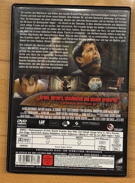 "Hostel" ist ein Paradebeispiel für spannendes, wenn auch erschreckendes Kino, das Sie an den Bildschirm fesseln wird. Ob als geselliger Filmabend in gruseliger Runde oder als Mutprobe allein im Dunkeln – diese DVD wird ihren festen Platz in Ihrer Horror-Sammlung finden.