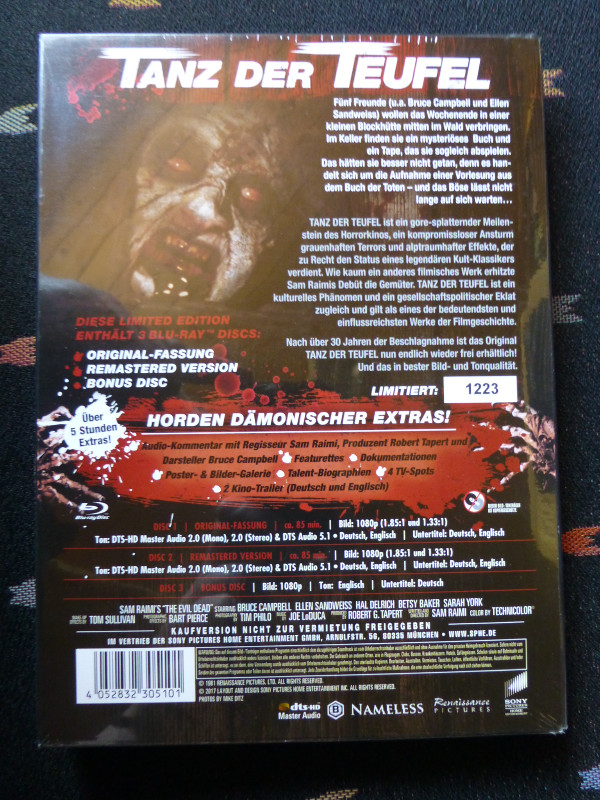 | Bemerkungen: Erschienen als Limited 3-Disc Edition im Mediabook. Covervariante B ist auf 2000 Stück limitiert. Die Limitierungsnummer befindet sich lediglich auf der J-Card. 12 Kapitel AVC codiert