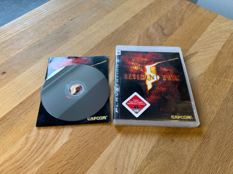 Dieses Angebot umfasst die originale Spieldisk und die zugehörige Originalverpackung mit beeindruckenden Artworks, die das dunkle Thema von "Resident Evil 5" widerspiegeln.