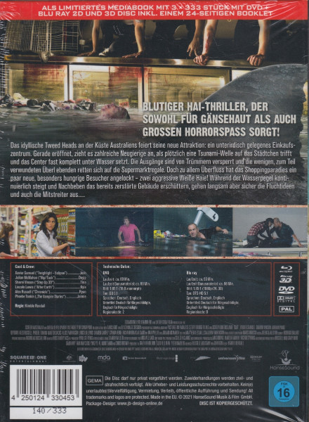 Tauchen Sie mit dem Mediabook (Cover B) von „Bait - Haie im Supermarkt“ in einen beispiellosen Thriller ein, der Ihre Nerven bis zum Äußersten strapaziert. Diese exklusive Blu-ray-Edition, ansprechend präsentiert in einem hochwertigen Sammler-Mediabook, ist ein Muss für jeden Liebhaber von Horror und Spannung. Der Film, der in einem Supermarkt spielt, der plötzlich von einem monströsen Hai heimgesucht wird, kombiniert klassische Schockmomente mit einer innovativen Handlung. Die beeindruckenden Spezialeffekte und eine intensive Darstellerleistung bringen den Adrenalinpegel zum Schwingen. Dieses Mediabook ist nicht nur eine Bereicherung für jede Filmsammlung, sondern bietet auch ein visuell packendes Erlebnis, das man so schnell nicht vergisst. Machen Sie sich bereit für hochspannende Unterhaltung, die den Hai buchstäblich aus dem Wasser lässt!