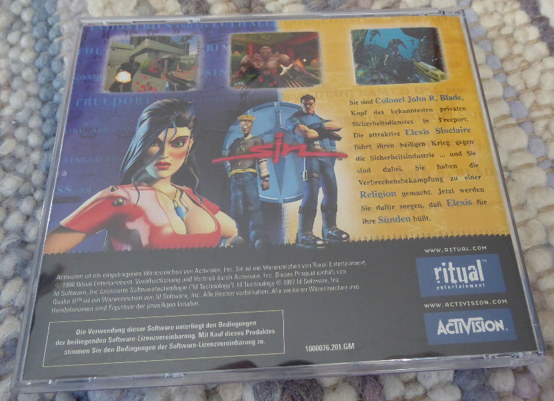 Das original PC-Spiel "SIN" das in den 90er erschienen ist. Box leider nicht mehr vorhanden (siehe Bilder). Seit Oktober 2023 nicht mehr indiziert.