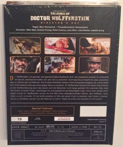 Lassen Sie sich vom "Wolfenstein 4Disc BluRay&DVD Director's Cut MEDIABOOK" in eine Welt voller Spannung und Schrecken entführen. Dieses exklusive Mediabook enthält nicht nur den Director's Cut des Horrorklassikers "The Curse of Doctor Wolfenstein", sondern bietet auch vier Discs voller Inhalte, die jeden Fan des Horror-Genres begeistern werden.