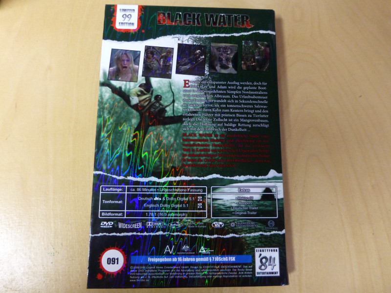 Tauchen Sie ein in die düstere Welt von "Black Water", einem packenden Horror-Thriller, der Ihre Nerven auf die Probe stellen wird. Diese seltene Limited Edition kommt in einer stilvollen großen Hartbox, die nicht nur optisch ein Highlight ist, sondern auch sicherstellt, dass dieses Sammlerstück in Ihrer DVD-Sammlung hervorsticht.