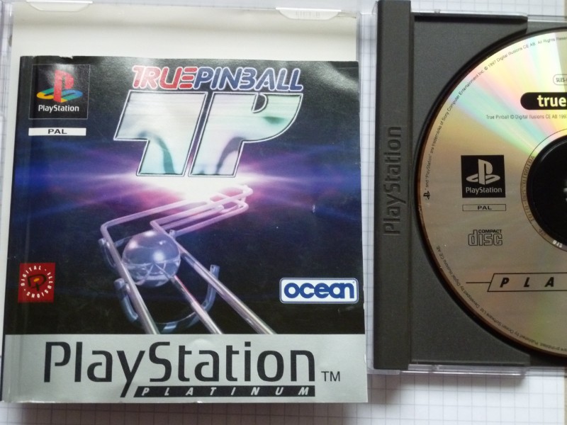 "True Pinball" gehört zur renommierten Platinum-Serie von Sony und garantiert daher höchste Qualität und langanhaltenden Spielspaß. Das Spiel kommt in seiner Originalverpackung, die das erkennbare PlayStation-Logo und das PAL-Format trägt, was auf eine Kompatibilität mit europäischen PlayStation-Konsolen hinweist.
