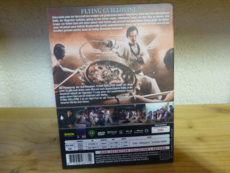 Lassen Sie sich von einer fesselnden Fortsetzung der Martial-Arts-Geschichte in den Bann ziehen mit der Limited Mediabook Edition von "Die fliegende Guillotine 2". Dieses exklusive Sammlerstück vereint aufschlussreiche Extras, eine hervorragende Bild- und Tonqualität und natürlich den unvergesslichen Film, der von Kritikern gelobt und von Fans weltweit geschätzt wird. Regie führte das talentierte Duo Cheng Kang & Hua Shan, und die prägnanten Darbietungen von Ti Lung, Ku Feng, und Lo Lieh verleihen diesem Klassiker ein weiteres Mal Leben.