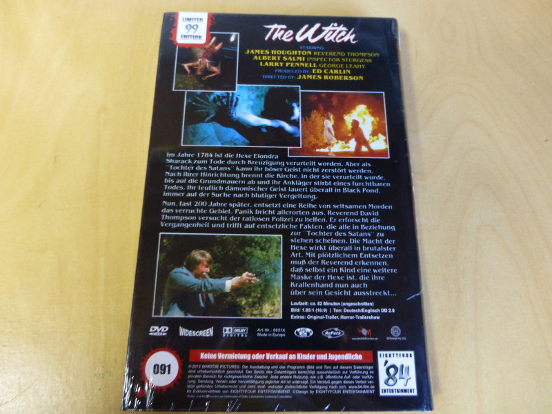 Die Hartbox-Ausgabe von "The Witch" zeichnet sich durch ein beeindruckendes und furchteinflößendes Artwork auf dem Cover aus, das sofort die Aufmerksamkeit jedes Horror-Fans fesselt. Dargestellt sind Schlüsselfiguren und Szenerien, die neugierig auf die geheimnisvolle und schaurige Geschichte machen.
