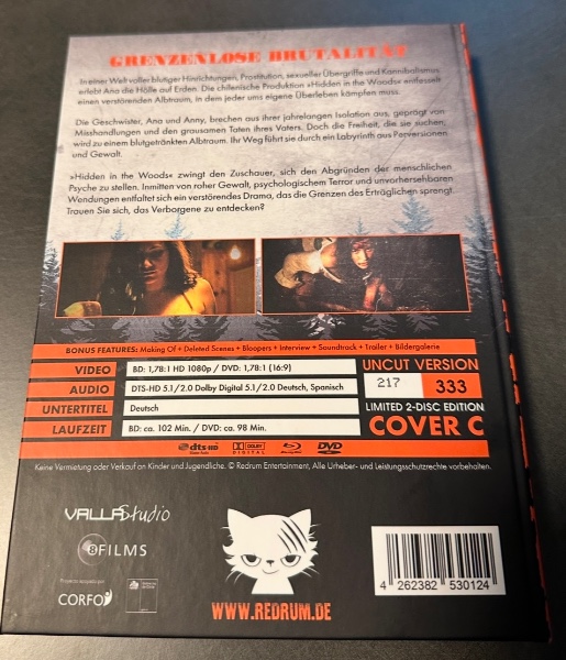 Entdecken Sie die exklusive Mediabook Edition von "Hidden in the Woods", das ideale Sammlerstück für Liebhaber des Splatter-Genres. Diese streng limitierte Ausgabe enthält nicht nur den Hauptfilm auf Blu-ray, sondern wird durch ein zusätzliches Comic bereichert, das die düstere und packende Atmosphäre des Films weiter vertieft.