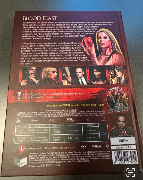 Tauchen Sie ein in die Welt des Horrors mit dem „Blood Feast Uncut Mediabook“. Diese exklusive Sonderedition ist ein wahres Sammlerstück und bietet nicht nur die ungeschnittene Version des berüchtigten Splatter-Klassikers, sondern auch ein reich illustriertes Mediabook, das jeden Fan des Genres begeistern wird. Mit seiner ansprechenden Aufmachung und den detaillierten Illustrationen auf dem Cover ist dieses Mediabook ein Blickfang in jeder Sammlung.
