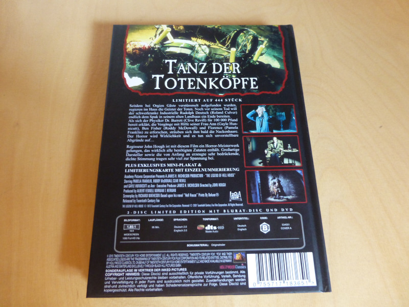 Tauchen Sie ein in eine Welt des Schreckens mit der Blu-ray "Tanz der Totenköpfe", einer exquisiten Veröffentlichung aus der Classic Horror Collection. Diese Sonderausgabe im Limited Mediabook bietet nicht nur höchste Bild- und Soundqualität, sondern ist auch ein absolutes Sammlerstück. Genießen Sie diesen gruseligen Klassiker, der mit seinem auffälligen Cover-Design, das sowohl einen schaurigen Totenkopf als auch das unheimliche Anwesen zeigt, sofort ins Auge fällt. Die Edition ist besonders für Liebhaber des Horror-Genres und Sammler von seltenen Filmversionen attraktiv. Sichern Sie sich dieses limitierte Stück, das in keiner Horror-Sammlung fehlen darf!
