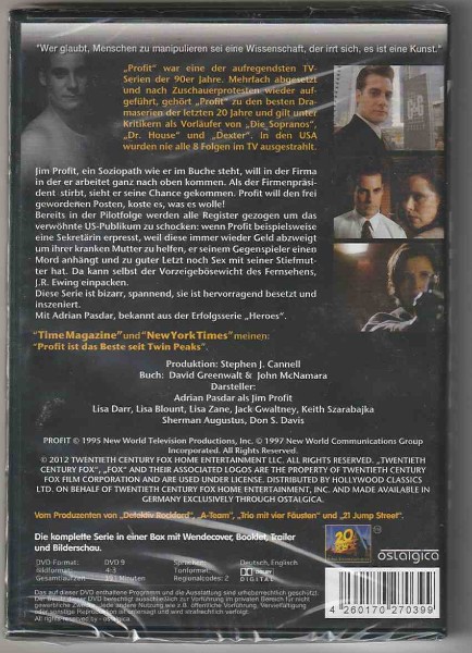 Versäumen Sie nicht die Gelegenheit, diese limitierte Edition zu besitzen und tauchen Sie ein in die faszinierende Welt von Jim Profit, die bis heute nichts von ihrer Relevanz und ihrem Biss verloren hat. Bestellen Sie Ihre Kopie noch heute und erleben Sie eine der kontroversesten Serien der Fernsehgeschichte!