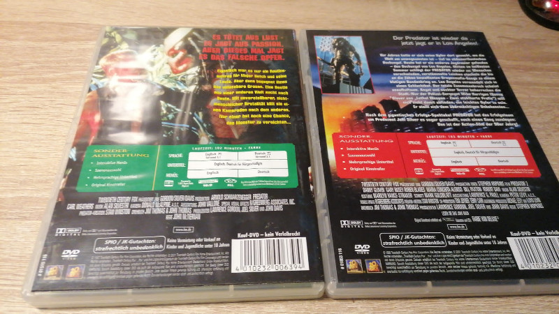 Predator punktet mit der legendären Dschungel-Atmosphäre, dem gnadenlosen Überlebenskampf und dem unvergesslichen ersten Aufeinandertreffen mit dem unsichtbaren Jäger. Predator 2 verlegt das Chaos in den Großstadtdschungel und zieht die Bedrohung noch einmal auf eine andere, düstere Ebene. Das macht die Kombination besonders spannend, weil du direkt zwei unterschiedliche Facetten des Predator-Mythos erlebst.