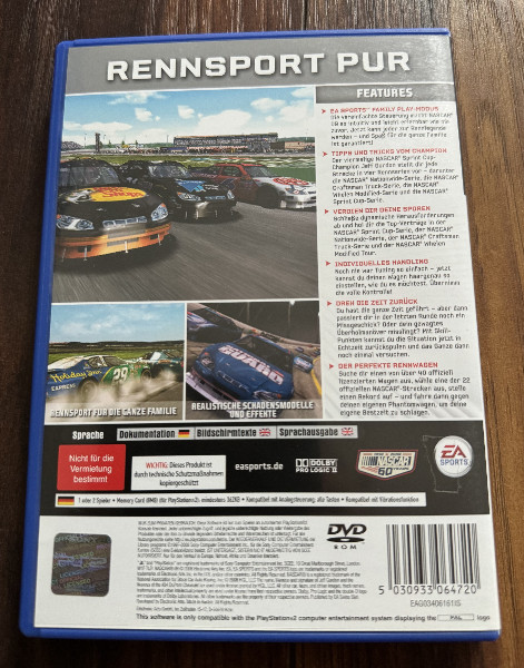 Erleben Sie fesselnde Renn-Action mit "NASCAR 09" für die PlayStation 2. Entwickelt von EA Sports, bietet dieses Spiel ein intensives Spielerlebnis, das sowohl Anfänger als auch erfahrene Rennfahrer begeistert. Treten Sie gegen gefeierte Rennfahrer an und meistern Sie herausfordernde Strecken in detailgetreuen Umgebungen. Dank der realistischen Grafik und der authentischen Fahrphysik, bietet dieses Spiel ein unvergleichliches Renngefühl. "NASCAR 09" erlaubt es Ihnen, sich hinter das Steuer der schnellsten Autos der Welt zu setzen und die Atmosphäre der berühmten NASCAR-Serie hautnah zu erleben.