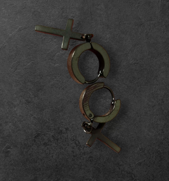 Entdecken Sie den Reiz dunkler Eleganz: Creolen mit Kreuzanhänger in Schwarz