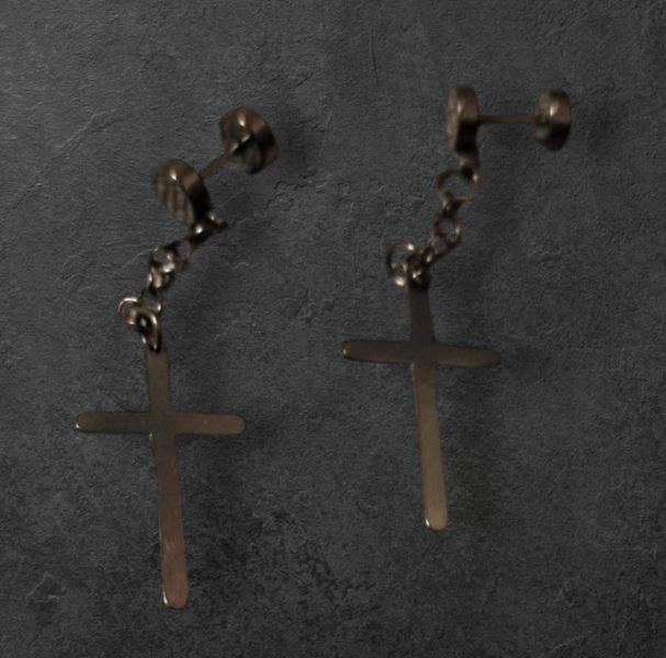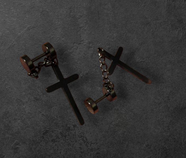 Ohrstecker mit Kreuz und Kette schwarz gothic Szen