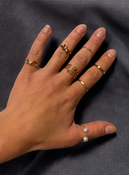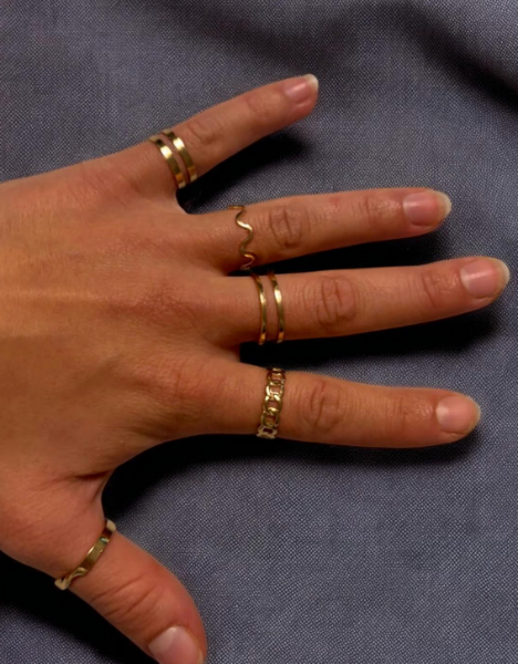 Im Film/Foto siehst Du einen modernen Stack-Look an einer Hand – mehrere schmale Ringe, die zusammen ein harmonisches Gesamtbild ergeben. Besonders schön: Die Designs sind unterschiedlich, aber passen wie aus einem Guss. Dadurch entsteht dieser „Ich-hab’s-einfach-drauf“-Vibe, ohne dass es übertrieben wirkt.