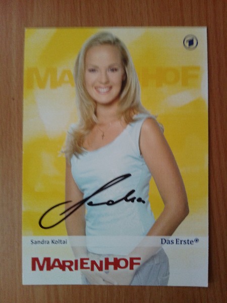 angeboten wird die abgebildete handsignierte Autogrammkarte von Sandra Koltai (Marienhof).