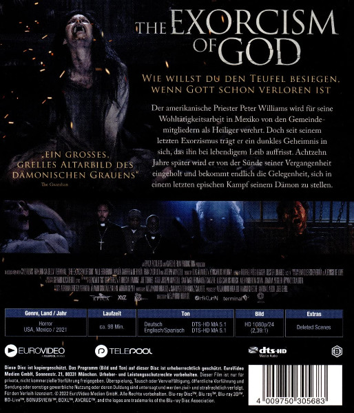 Entdecken Sie die Abgründe des Übernatürlichen mit dem packenden Horrorfilm "The Exorcism of God" auf Blu-ray. Diese fesselnde Produktion bietet nicht nur erstklassige Bild- und Soundqualität, sondern auch eine Geschichte, die Sie bis zur letzten Minute in Atem halten wird. Perfekt für Fans von dunklen Drehbüchern und mystischen Atmosphären. Die Blu-ray-Ausgabe präsentiert sich in hochwertigem HD, wodurch jede schaurige Szene mit beeindruckender Klarheit zum Leben erweckt wird. Freuen Sie sich auf einen Abend voll gespannter Erwartungen und schlafloser Nächte, denn "The Exorcism of God" wird Sie sicher nicht kalt lassen. Geeignet ausschließlich für Erwachsene, wie das FSK 18-Label deutlich macht, ist dieser Film ein Muss für jeden Horror-Liebhaber.