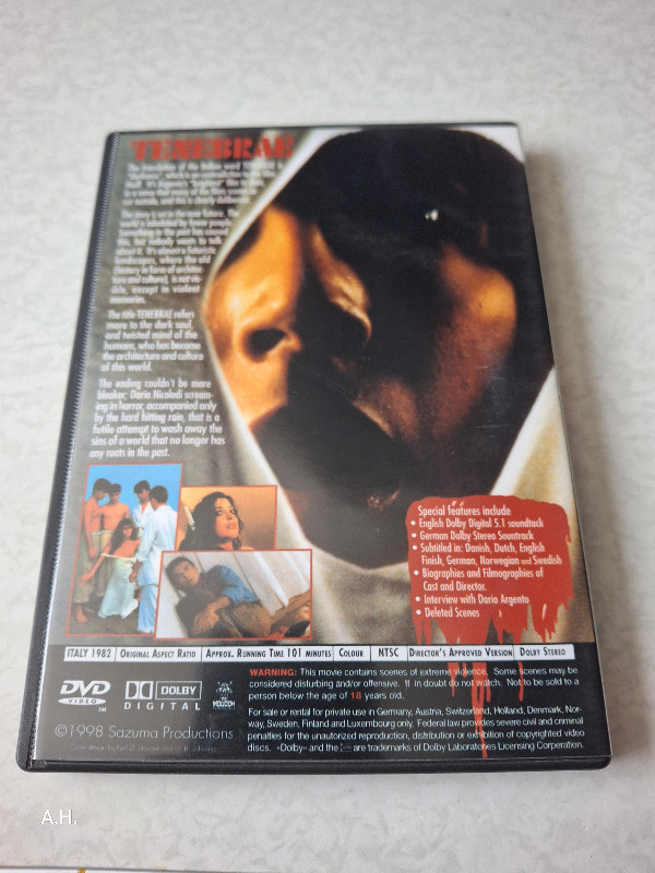 Ideal für eine Nacht des Nervenkitzels, ist "Tenebrae" in Ihre Sammlung ein unverzichtbarer Titel, der die Grenzen des Horrorfilms neu definiert hat. Sichern Sie sich diese seltene Erstauflage und erleben Sie, wie Dario Argento die Kunst des Horrorfilms meisterhaft inszeniert.