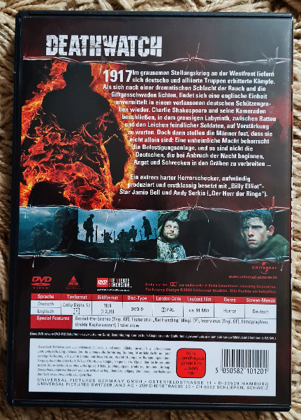 Tauchen Sie ein in die düstere Atmosphäre des Ersten Weltkriegs mit der Horror-DVD "Deathwatch", jetzt erhältlich für Ihre Heimvideosammlung. Dieses packende Drama entführt Sie in die Schützengräben Westeuropas, wo eine Gruppe britischer Soldaten nicht nur gegen den Feind, sondern auch gegen übernatürliche Kräfte kämpfen muss.