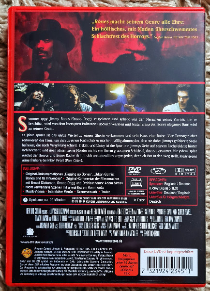 Holen Sie sich jetzt diese Horror-DVD und erleben Sie die dunklen Geheimnisse, die Snoop Dogg in "Bones - Der Tod ist erst der Anfang" zu enthüllen hat. Gänsehaut garantiert!