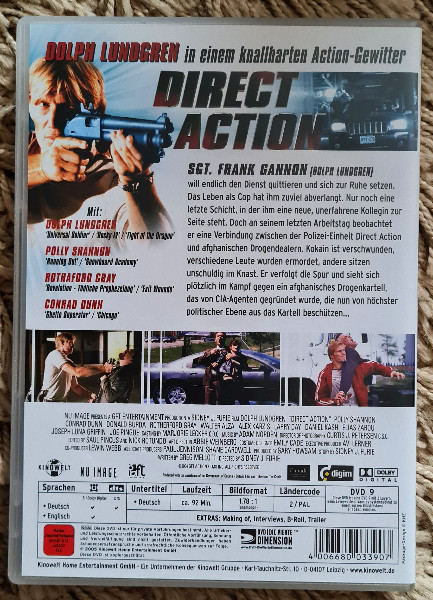 Lassen Sie sich diese Gelegenheit nicht entgehen, Dolph Lundgren in einer seiner klassischen Rollen zu erleben, unterstützt von packender Action, die Sie an den Bildschirm fesseln wird. "Direct Action" ist mehr als nur ein Film – es ist eine explosive Mischung aus Gerechtigkeit, Spannung und filmischer Exzellenz. Holen Sie sich noch heute Ihre Kopie dieser fesselnden DVD und bereiten Sie sich darauf vor, in eine Welt voller Adrenalin und Action eingetaucht zu werden!