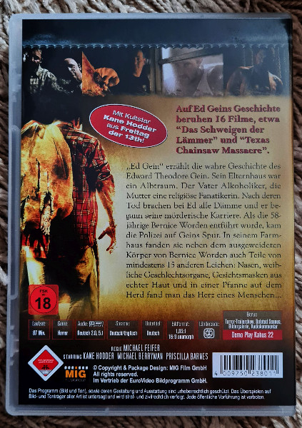Schlüsselwörter: Ed Gein, Horror, Serienkiller, DVD, Kane Hodder, Michael Berryman, Psycho, The Texas Chainsaw Massacre, Hannibal Lecter, FSK 18.