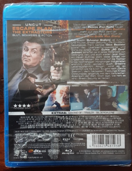 Wenn Sie ein Fan von Nervenkitzel und Spannung sind, ist die Blu-ray "Escape Plan 3: The Extractors" das perfekte Produkt für Sie! In dieser Fortsetzung bringt Actionlegende Sylvester Stallone seine unverkennbare Präsenz zurück auf die Leinwand, unterstützt von Stars wie Max Zhang und Dave Bautista. Diese ungeschnittene Version verspricht rohe Intensität und ist für Zuschauer ab 18 Jahren freigegeben, perfekt für alle, die unverfälschte Action lieben.
