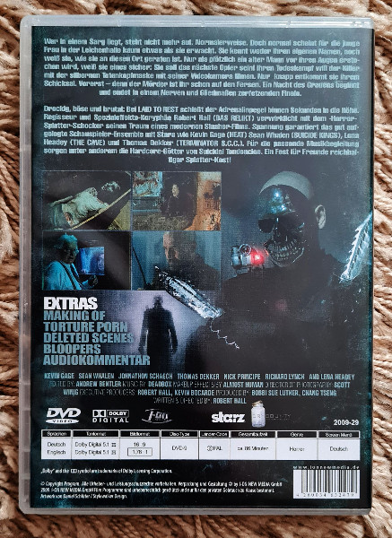 "Laid To Rest" erzählt die erschreckende Geschichte einer jungen Frau, die ohne jegliche Erinnerung an ihre Vergangenheit in einem Sarg aufwacht. Was folgt, ist ein brutaler Kampf ums Überleben gegen einen gnadenlosen Serienkiller, der durch seine grauenvollen Masken und die schrecklichen Mordwerkzeuge bekannt ist. Unter der Besetzung finden sich bekannte Namen wie Bobbi Sue Luther, Sean Whalen, und Kevin Gage, die eine intensive und fesselnde Darstellung ihrer Charaktere liefern.
