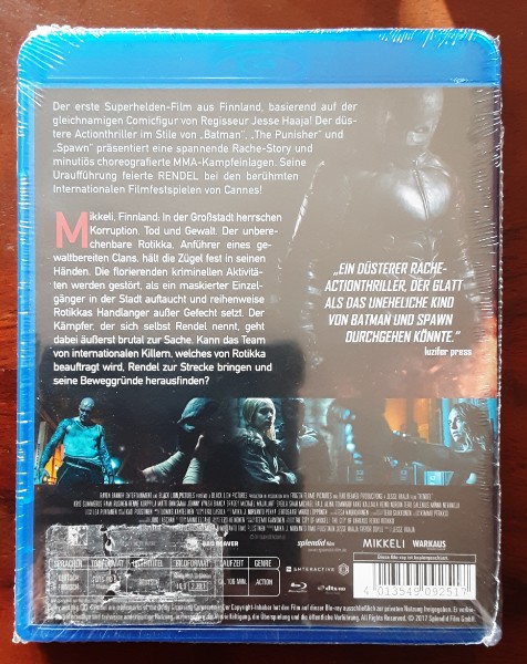 Erleben Sie mit der Blu-ray-Ausgabe von "Rendel" ein unvergleichliches Filmabenteuer, das Fans von düsteren Superhelden-Geschichten fesseln wird. Dieser finnische Actionthriller offenbart eine tiefe und dunkle Geschichte, inspiriert von Kultfiguren wie The Punisher und Spawn. Der Film ist für Zuschauer ab 18 Jahren freigegeben (FSK 18), was auf die intensiven und teilweise brutalen Szenen hinweist, die für ein erwachsenes Publikum geeignet sind.