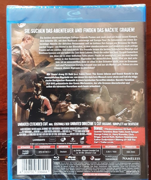 Entdecken Sie mit der 2-Disc Uncut Edition von "Hostel" neue Dimensionen des Horrors. Diese spezielle Veröffentlichung beinhaltet die unrated Director''''''''''''''''s Cut Fassung, die erstmals außerhalb der Kinos zu sehen ist und bietet zudem ein völlig neues Bild- und Tonmaster. Vergewissern Sie sich, dass dieses Exemplar mit seinem "SPIO/JK"-Prüfsiegel nicht nur eine herausfordernde, sondern auch eine legal bedenkenlose Anschaffung in Ihrer Sammlung wird. Die unnachahmliche Spannung und die düstere Atmosphäre, die "Hostel" auszeichnet, sind in dieser Edition in vollem Umfang zu erleben. Ob als Fan verstörender Thriller oder als Sammler seltener Filme – diese Blu-ray ist ein absolutes Muss. Nutzen Sie die Gelegenheit, Teil dieses schockierenden Abenteuers zu werden und sichern Sie sich ein Exemplar. Erweitern Sie Ihre Horror-Sammlung um ein Stück Filmgeschichte, das in keiner Sammlung fehlen sollte.