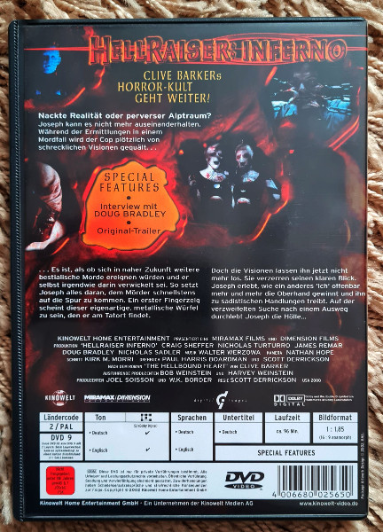 Geeignet für Erwachsene und Fans von psychologischen sowie übernatürlichen Horrorgeschichten, „Hellraiser 5 - Das Inferno“ garantiert einen packenden Filmabend voller unerwarteter Wendungen. Machen Sie sich bereit für ein intensives Erlebnis, das Sie so schnell nicht vergessen werden. Holen Sie sich jetzt Ihre DVD und lassen Sie die Grenzen zwischen Realität und Albtraum verschwimmen in diesem unvergesslichen Teil der Hellraiser-Saga.
