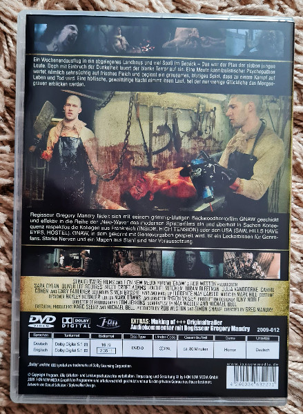 Wenn Sie ein Fan von Horrorfilmen sind, die den Zuschauer durch psychologischen Terror sowie physische Abscheulichkeiten am Rand des Sitzes halten, ist "Gnaw" genau die richtige Wahl für Sie. Die intensiven und dunklen Bildmotive auf der DVD-Hülle lassen auf eine Geschichte schließen, die sowohl fesselnd als auch erschreckend ist. Perfekt für einen Horrorfilmabend, an dem man eigentlich niemanden alleine nach Hause gehen lassen möchte.