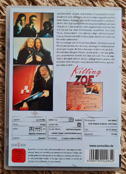 Zögern Sie nicht länger und fügen Sie "Killing Zoe" Ihrer DVD-Sammlung hinzu. Sie ist perfekt für einen spannenden Filmabend oder als Geschenk für jeden Liebhaber des Action-Kinos. Erleben Sie, wie Quentin Tarantino und Regisseur Roger Avary ein Meisterwerk des Spannungskinos erschaffen, das Sie nicht verpassen sollten!