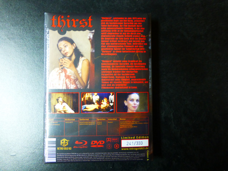Verpassen Sie nicht die Chance, "Blutdurst - Thirst" in dieser einzigartigen Mediabook-Ausführung zu besitzen und sich jede Schaudern erregende Szene in bester Qualität immer wieder anzusehen.