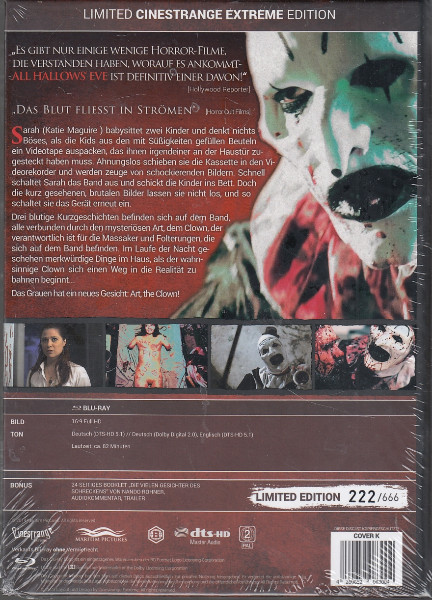 Das Cover des Mediabooks ist ein echter Hingucker, welcher Artwork vom Feinsten zeigt und sofort ins Auge sticht. Diese spezielle Ausgabe ist perfekt für Sammler und Enthusiasten des Horror-Genres, die sowohl auf Qualität als auch auf Exklusivität Wert legen. Steigen Sie tief in die düstere Welt von "Terrifier - The Beginning" ein und erleben Sie Halloween wie nie zuvor.