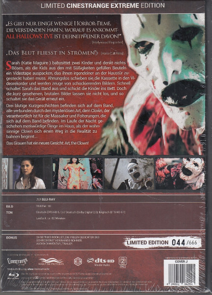 Lassen Sie sich von „Terrifier - The Beginning“ in eine Welt des Horrors entführen, die für jeden Fan des Genres ein Muss ist. Diese Sonderedition im Mediabook verpackt nicht nur den Film in höchster Blu-ray-Qualität, sondern bietet auch ein exklusives Sammlerstück für Liebhaber des Horrorkinos. Dieses limitierte Mediabook mit der einzigartigen Nummer 044 enthält neben dem Film auch spannendes Bonusmaterial, das einen tieferen Einblick in die Entstehung des Gruselwerks gibt.