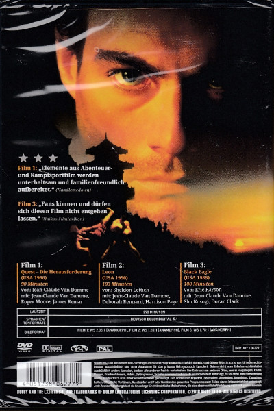 Tauchen Sie ein in die Welt der Action und Abenteuer mit der Van Damme Box, welche drei packende Spielfilme des weltberühmten Actionstars Jean-Claude Van Damme enthält! Diese ultimative Sammlung beinhaltet die Filme "Quest", "Leon", und "Black Eagle" - eine exzellente Auswahl, die jedem Fan von spannungsgeladenen Kampfszenen und atemberaubenden Stunts das Herz höher schlagen lässt.
