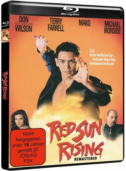 In RED SUN RISING bekommt es DON "THE DRAGON" WILSON mit einem übermächtigen Gegner zu tun, der ihn zunächst mit dem berüchtigten "Death Touch" in die Knie zwingt. Nach seiner Genesung erlernt er bei seinem Mentor die Technik und kann gestärkt die geschworene Rache für Technik und kann gestärkt die geschworene Rache für den Tod seines Freundes in die Tat umsetzen. RED SUN RISING ist ein hochkarätig besetzter Actionstreifen (u.a. mit MICHAEL IRONSIDE, MAKO und SOON-TEK OH). Das verspricht DON WILSON in Bestform mit jeder Menge Sidekicks im Kampf gegen einen skrupellosen Yakuza- Boss, der in L.A. einen Bandenkrieg anzettelt.