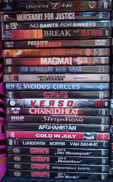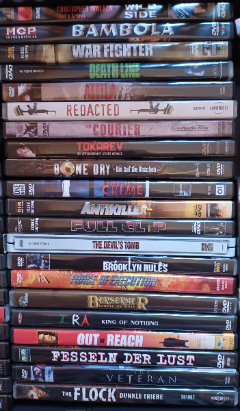Ich biete die abgebildeten 50 DVDs (alle FSK 18) zusammen zum Verkauf.