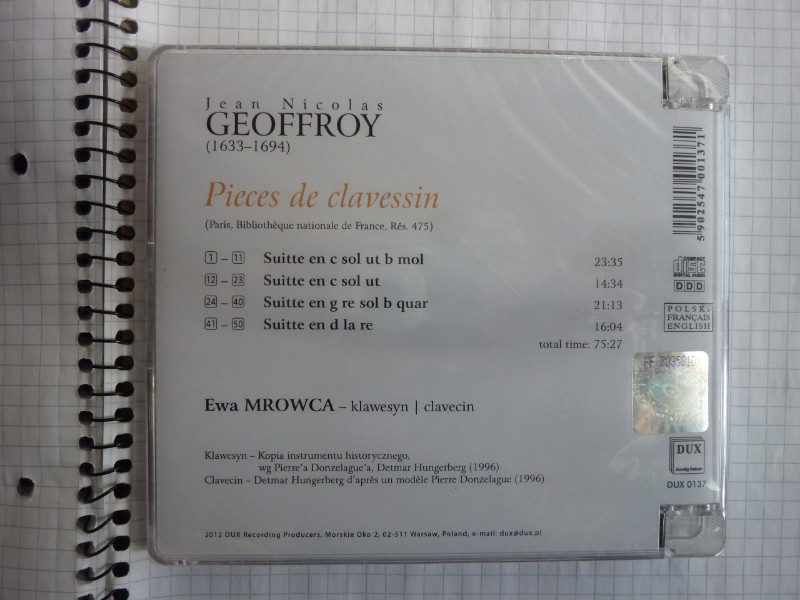 Entdecken Sie Meisterwerke des Barock: "CD Geoffroy - Pieces de Clavessin - Ewa Mrowca"