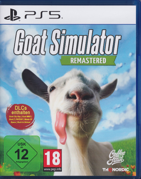 Empfohlen für Spieler ab 12 Jahren, freigegeben mit einer USK 18 Kennzeichnung, verspricht Goat Simulator Remastered absoluten Spielspaß ohne reale Gewalt. Gesteuert durch die fortschrittliche Technik der PlayStation 5 genießen Sie flüssige Animationen und schnelle Ladezeiten, die das Spielerlebnis noch angenehmer gestalten.