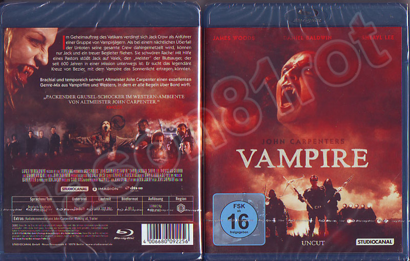 In dieser schaurigen Geschichte bekämpft Jack Crow als Anführer einer Vampirjäger-Gruppe die Diener der Dunkelheit. Miterleben, wie Crow und sein Team durch gnadenlose und packende Szenen Rache und Erlösung suchen. Durch die hochwertige Studiocanal-Produktion und atemberaubende Special Effects wird die Geschichte um Vampire und Seelenfresser lebendig und intensiver als je zuvor.